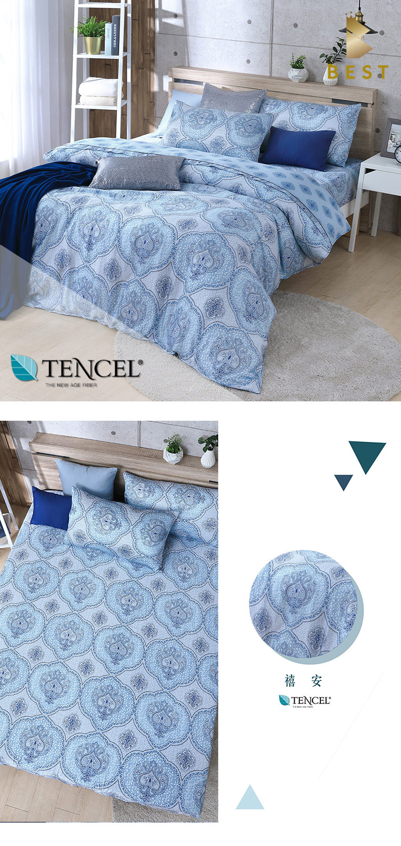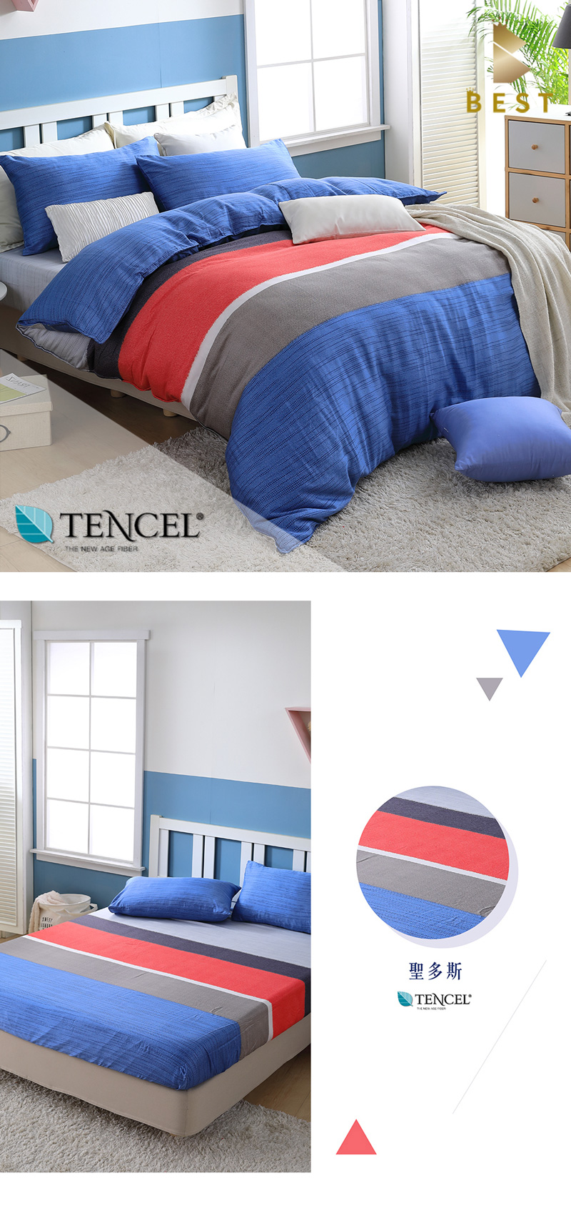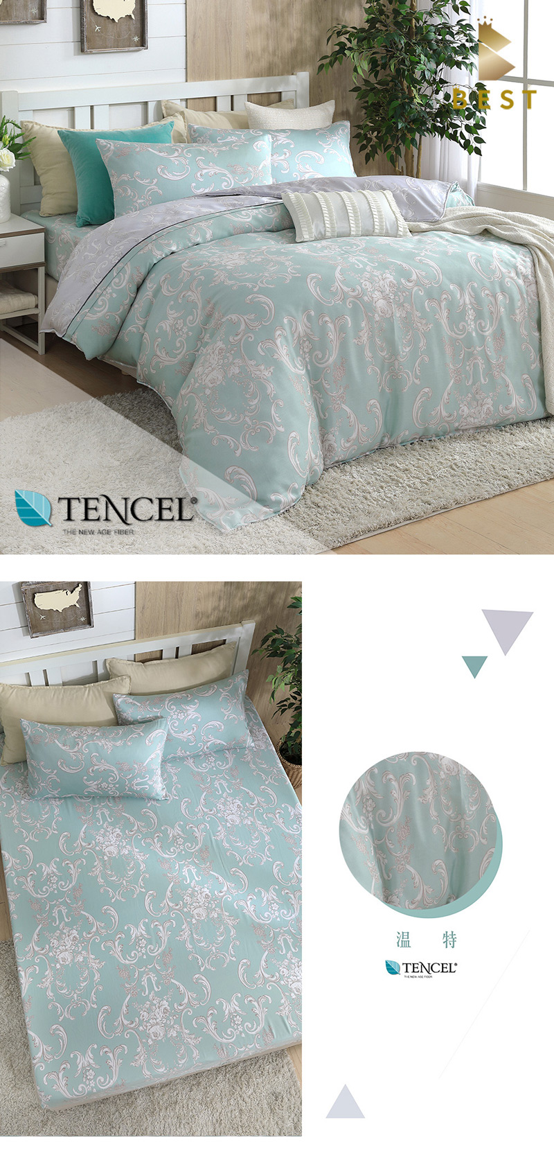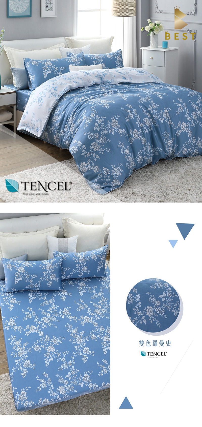 100%奧地利純天絲全鋪棉加高床包組 品牌:BEST貝思特 ▼款式: